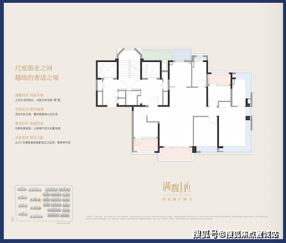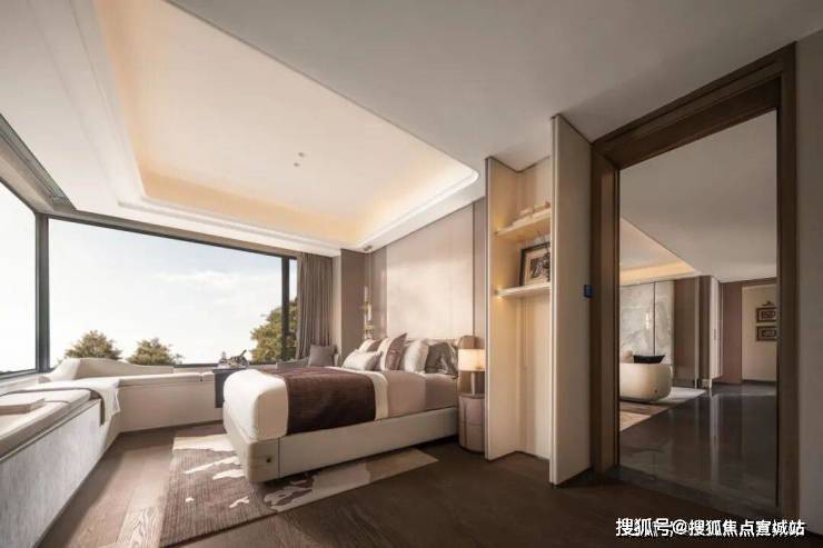 主卧套房面宽达 4 米、进深 5.5 米,配备 270° 转角飘窗(边套),视野与舒适度拉满;
