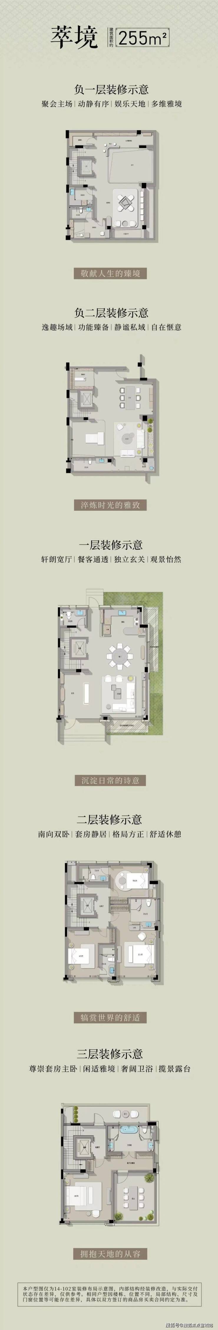 255㎡边套:定位“阔绰改善型院墅”,庭院面积扩展至140㎡,可容纳更多个性化设计(如定制花池、小型水景);一层空间开阔,搭配全景采光设计,阳光通透性更佳;三层设南北双露台,一侧可种绿植,一侧可摆放休闲家具;地下空间同样支持5.8米层高拓展,能满足家庭多元需求(如影音、储物、专属工作室等),动线设计兼顾实用性与私密性。
