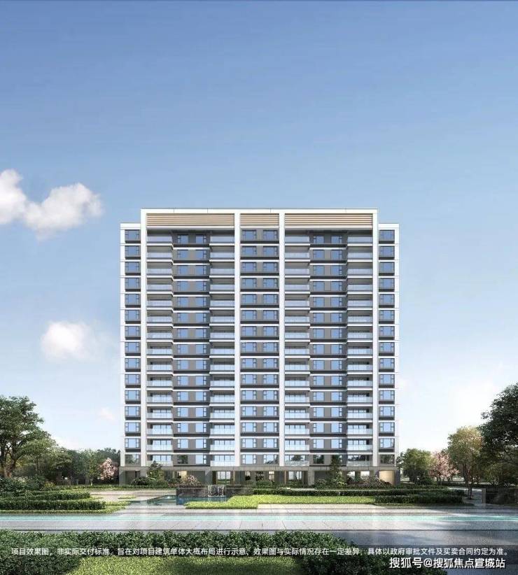 项目的建筑外立面采用现代简约的风格,搭配有序的横线线条,以米白色为主并搭配一定香槟金暖色调,并利用大面积玻璃+部分房间近乎落地窗设计,通过分段式化解建筑尺度,丰富造型,整体时尚且更为耐看。