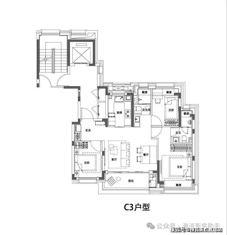 多飘窗设计+ “独立”电梯厅 , 实用面积同样非常高!