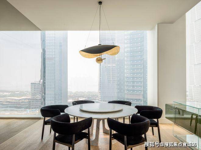 从材质方面,空间装饰十分丰富,留白和黑色的典雅作为核心,加入不同的金属、皮革和布艺,空间更加圆满,生活也随之更包容。