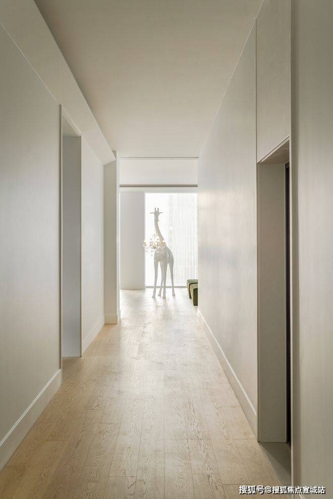 书房被藏在墙面的木色隐形门内,隐形门巧妙地在客厅与书房之间作了缓冲,避免白色“重叠”而造成疲劳感。