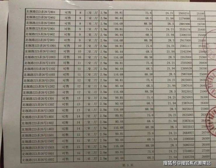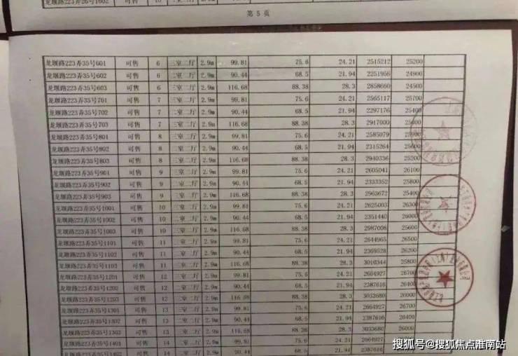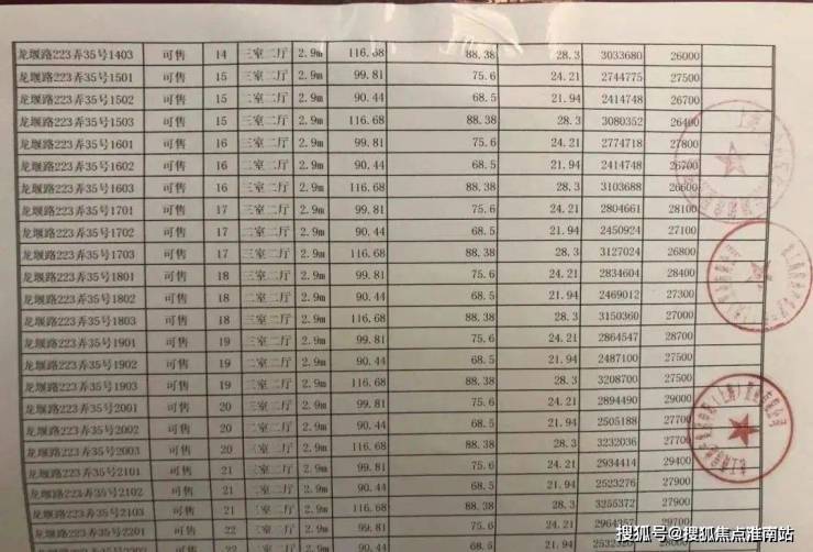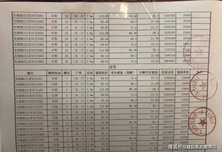 项目一房一价表