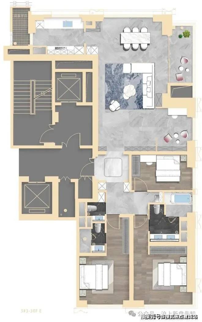 建面约193、237㎡为类一梯一户设计,拥独立门厅;建面约303㎡标配2梯1户、私享梯厅,纯粹的大平层圈层!