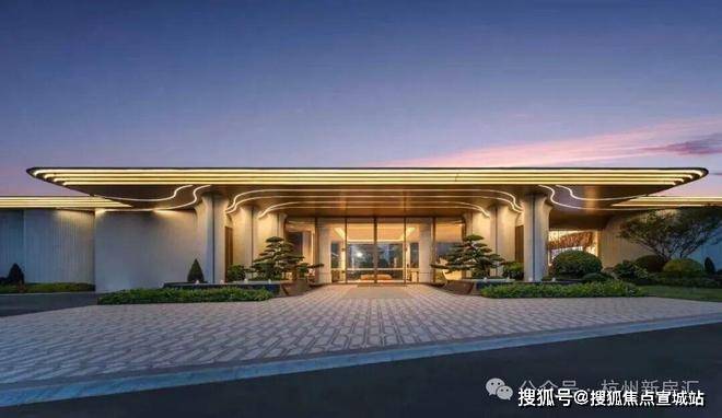 鸣澜里售楼处专线:400/8862/334小区主入口设计为现代化酒店式门楼,跨度约66米,采用金属材质与玻璃结合。两侧石材景墙如屏风般展开,对植名贵罗汉松,整体十分气派,归家仪式感满满。