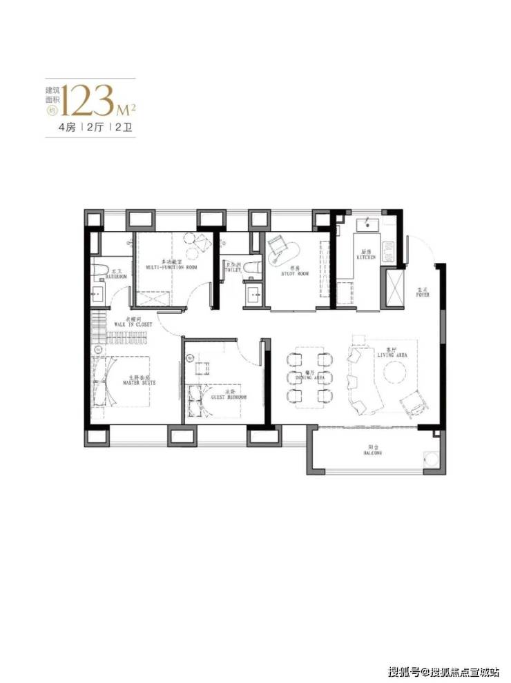产品: 103㎡、107㎡的三房两厅两卫及123㎡、129㎡的四房两厅两卫。
