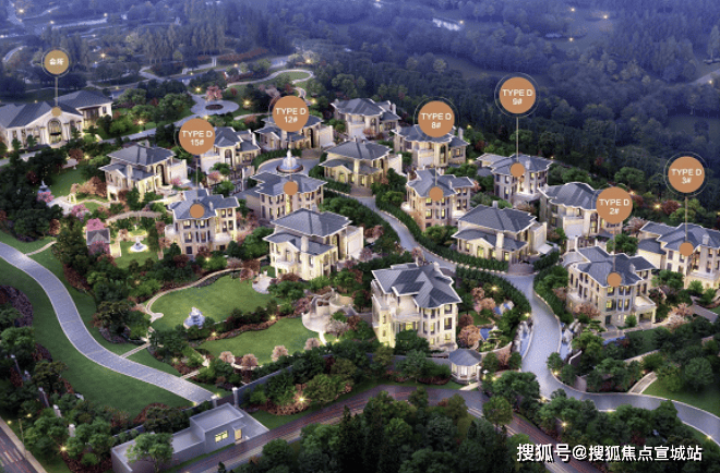 小区规划:小区共由 16 席商业独栋别墅组成,容积率仅 0.35,绿化率高达 45%,周边有原始森林和原生河道环绕。
