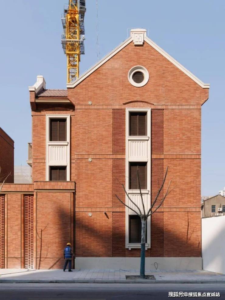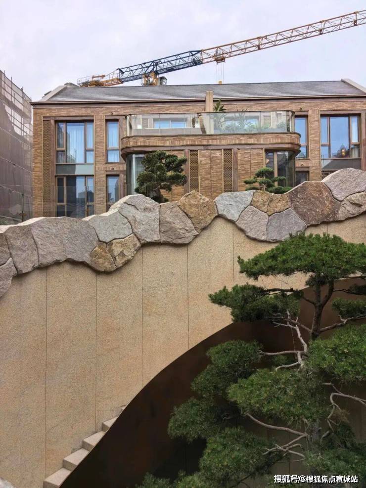 外立面用宜兴手工釉面陶砖,187 种砖型、8 种拼法,历久弥新、质感高级,区别于普通豪宅的玻璃幕墙,兼具历史底蕴与现代审美