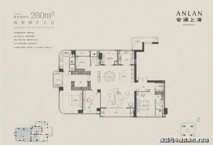 建面约280㎡ 总价4300-5600万 单价15.3-20万/㎡