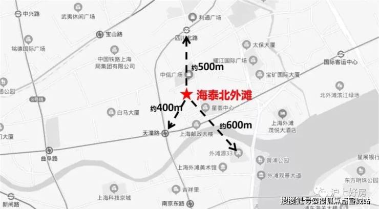 「海泰北外滩」位于虹口区四川北路塘沽路(江西北路以东,塘沽路以南,四川北路以西和规划七浦路以北),距离外滩源仅有600米。