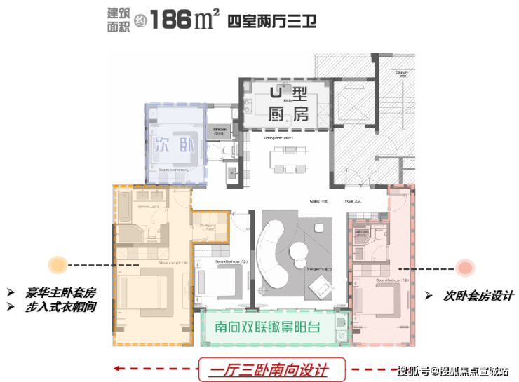 在如此优越地段上,中建国际携手苏州轨交,带来了建面约164/186/239㎡三种户型。