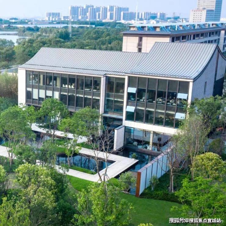 新中式建筑美学:全石材干挂立面,融合江南园林"四进院落"礼序,打造"三环一轴四坊十二巷"景观体系