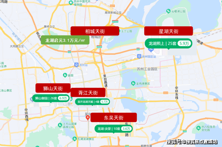 狮山御园6.9万/㎡(临近狮山天街)、龙湖熙上5.9万/㎡(临近青剑湖星湖天街)、龙湖泱望3.6万/㎡(临近东吴天街)、首开龙湖天赋5.7万/㎡(临近姑苏胥江天街)、华侨城龙湖启元3.1万/㎡(临近相城天街)。