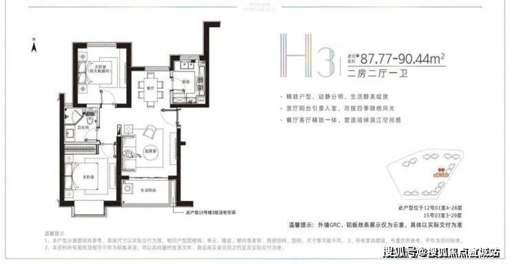 建面约78-91.22平米的小户型,两房两厅一卫的格局,非常适合年轻刚需家庭上车。
