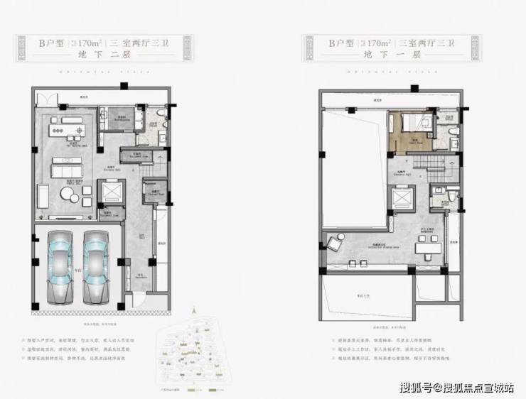 一般的合院,都会建成2+3,地下两层,地上三层。但是春江御园示范区却打造了2+2户型,建筑主体地下两层(其中一层为地下室夹层),地上两层。虽比一般合院少了一层,但却是十分合理的居住尺度。不论是建筑的美观度还是居住的体验感都是非常适宜的。
