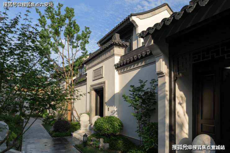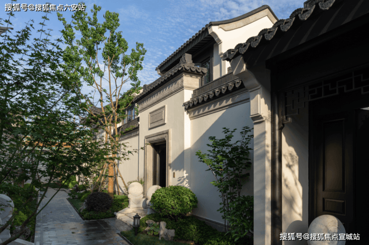 门窗、影壁、屋顶等经典中式型材与凯撒灰石材等创新中式型材巧妙融合,使得建筑整体仿若高冠博带的雅仕,踏风而来、明朗雅逸。枫、松、红梅、鸿运果等颇具中式特色的盆景,虚实相映,沿途比比皆是,生活鉴赏家们感受着古今人居美学的相融相生,触摸着由真材实料勾勒而成的建筑中,所蕴含着的匠心之美。