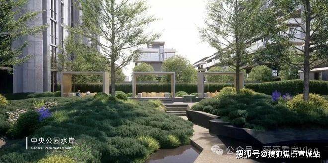 在社区内部,则通过一条自然水轴,串联六大景观节点,从约35米宽的酒店级社区大门,到内部水院以及不同主题的景观花园,步步皆景。