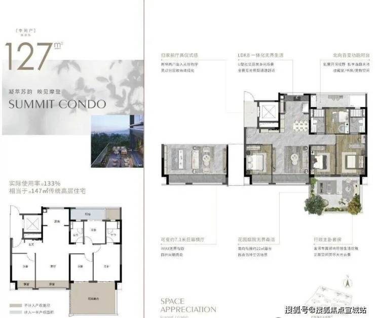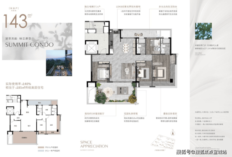 🥇建面约143㎡:欢聚无界约29㎡花园露台实际使用面积相当于传统住宅185㎡传统高层住宅