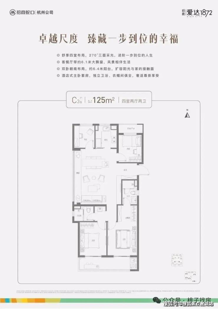 约270°采光面、双卧朝南动静分离、二分离式公卫、主卧豪华套房,不说别的,就冲着图中展示的各项维度,这套大四房就值得用心珍藏。