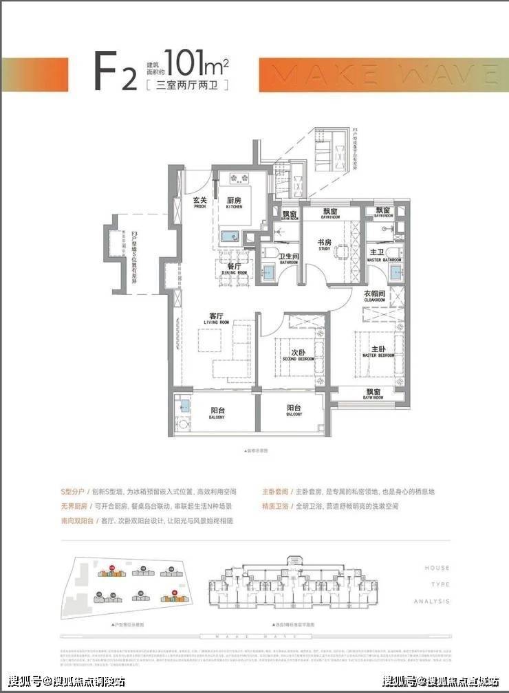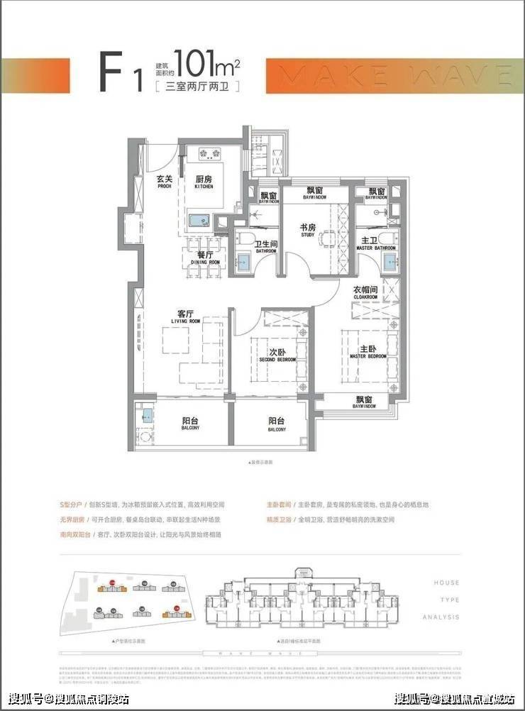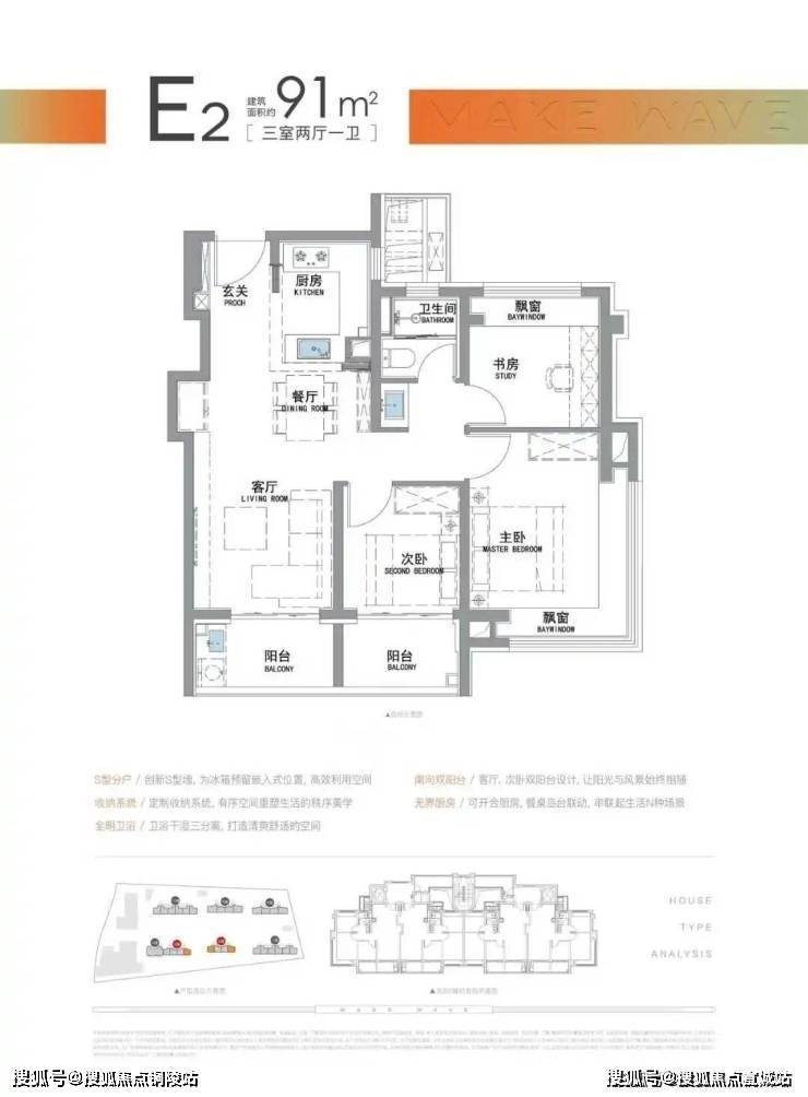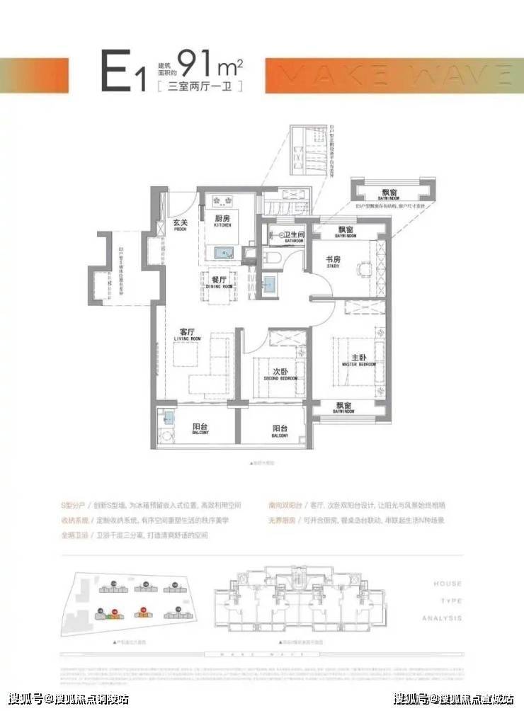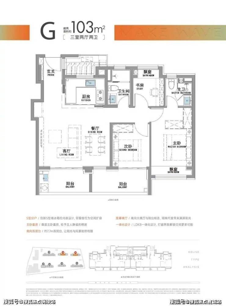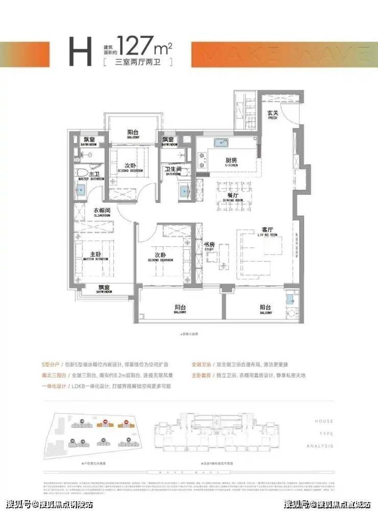 建面约127㎡三房两厅两卫,该户型最大的亮点是有着比肩豪宅的南北三阳台黄金布局,这是2025年之后,松江首个三阳台户型。