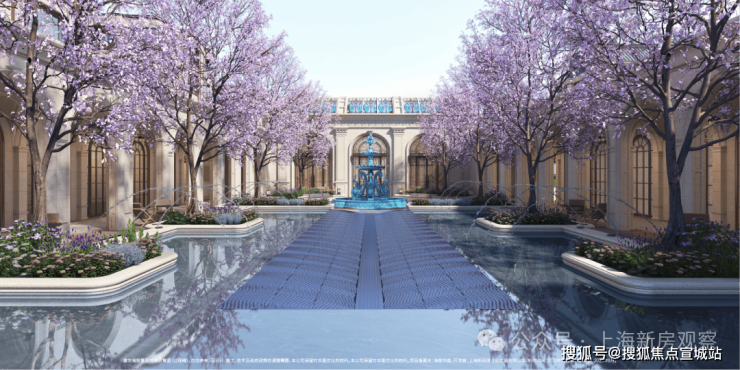 以水为引,起承转合,以海天华堂、华亭烟雨、凤亭问泉,清涟夜月、黄浦秋涛等景观组团,悠然铺陈东方院落式归家礼序。