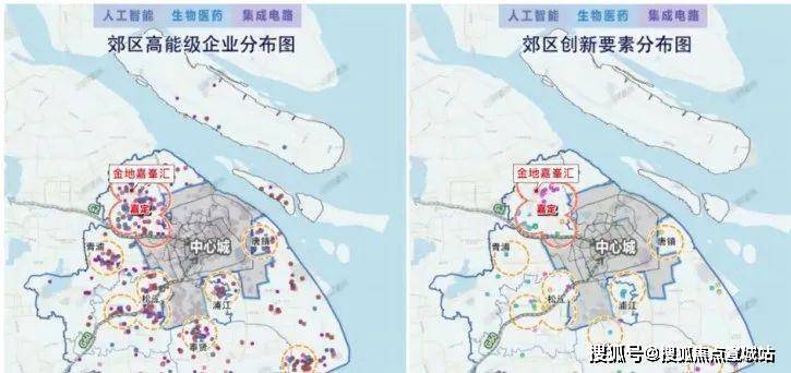 如下图所示,嘉定北的创新要素(高校+科研院所)在五个新城中是非常密集的。