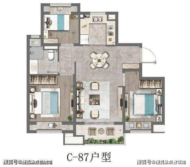金山保利云湖壹号售楼处电话/地址:400-8862-334【预约☎】建面约104㎡的3房户型,四开间朝南+主卧套房设计+全卧室带飘窗+南北通透+超大的宽面阳台,做出了拥有120㎡以上户型的尺度感和舒适度。如果预算合适,这个户型绝对推荐。
