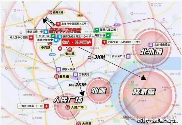 很多自媒体喜欢把象屿·苏河琹庐简单归类为“苏河湾板块”,这没错,但并不完全准确。我的观点是:它正好处在一个“黄金三角”的物理中心和心理原点。