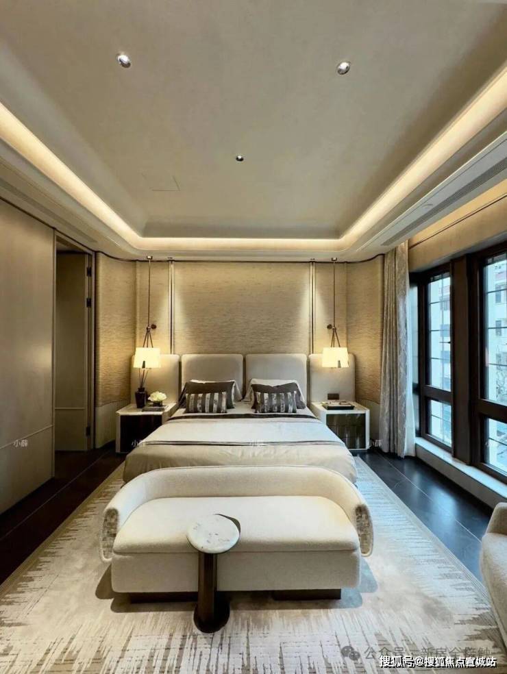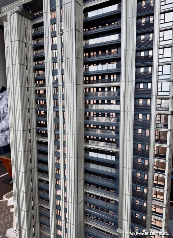 高层住宅的外立面,采用了大面玻璃幕墙,香槟金色和深灰色的铝板的结合,那种独特的“帽子”式塔冠设计,让建筑在天空中拥有极高的辨识度。它不像某些豪宅那样金光闪闪,而是有一种哑光的质感,更耐脏,也更耐看。