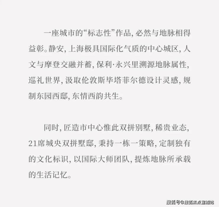 售楼处电话/地址:400-838-6958√√保利·永兴里21席城央双拼别墅邸,以风貌之形制,敬呈全球臻稀恒产。复兴里弄建筑传统特色建筑肌理,半露半显中,让全球华人家族重回城央静安。该地块溢价率为9.7%,楼板价为81375元/平方米,高层房地联动价12.5万/m²,风貌