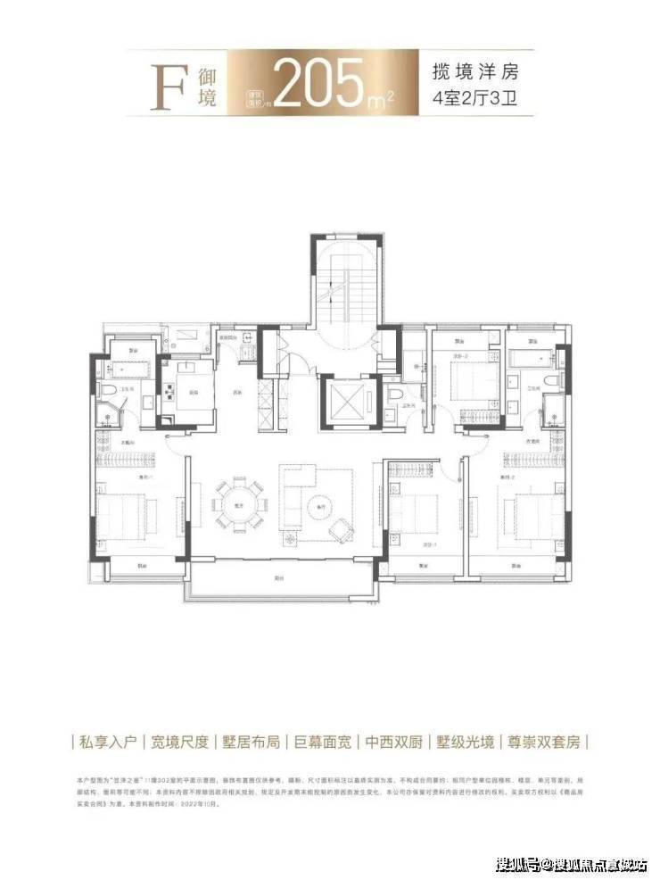 建面约205㎡洋房新品,央景楼座,俯瞰一园精粹。约20米南向五开间、约8.1米巨幕横厅、双奢适套房主卧、中西双厨,处处彰显豪阔领域。因市场罕有的宽境尺度、高阶的精工标准、纯粹低密的观景视野,成为本次加推的明星户型。