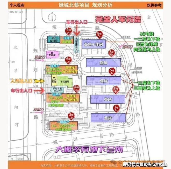 另外从设计方案也可以看出,项目地面无车位,全人车分流,机动车出入口分别位于西侧规划四路、以及北侧规划二路;