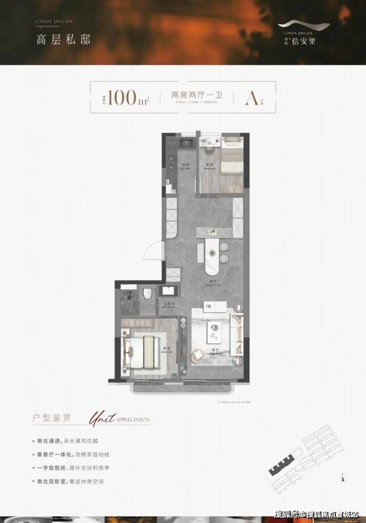 高层住宅主力户型为建面约90 - 100㎡的1 - 2房,信达信安里售楼处电话:【已认证】均价13.6万/㎡,总价1060万起。
