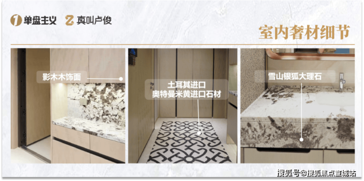 项目不惜成本,严选十余种珍贵奢石与臻质材料,外立面、门庭、公区、车库、室内等多重空间,皆以奢材精心雕琢。