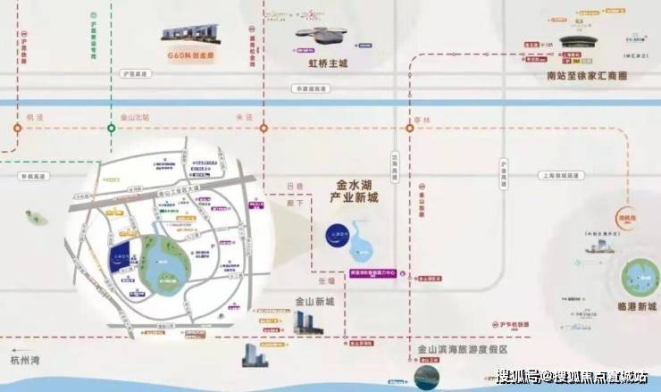 轨交方面,项目离轨交22号线金山园区站直线距离约5.5km,公交卡直接上车,可以去往上海南站,再坐三站地铁即到徐家汇。