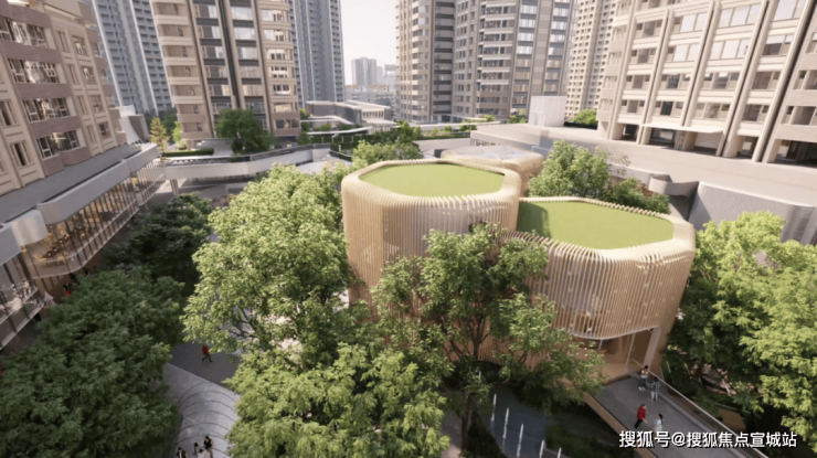 绿野街区:约45度角贯穿的街区,充分将中兴公园的自然引入中心广场,打造游弋、休憩、社交式中央静谧活动区,中央广场有三个自然亲切的树屋,共同形成一个开放且亲密的城市打卡点、自然栖息点。