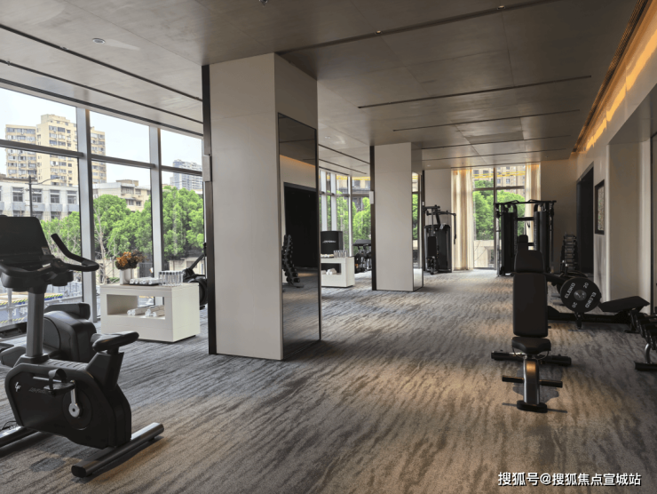 二楼通过专业餐酒吧设备、艺术光厅、上海首个度假感植物园泳池等营造艺术感会所。并围绕女性业主的需求打造女性友好健身房,专属设计了适配女性的器械,例如Eleiko多功能架、瑜伽室、补妆间等,并配置了健康管理服务。