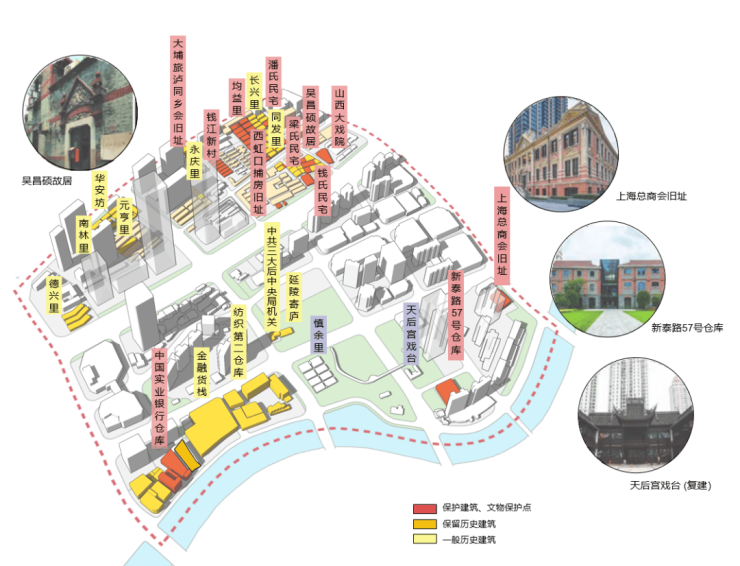 苏河湾片区蕴含丰富的历史文化资源,规划将融合新旧肌理,重塑“一湾五区”新格局。对土地进行高度复合利用,实现混合街坊比例90%以上。保护历史风貌街坊,对历史建筑进行功能活化及业态更新,约有50万方保留保护建筑、17个风貌保护街坊,体量远超新天地与田子坊的总和。打造3条人文体验游线,创建苏河湾文化品牌!