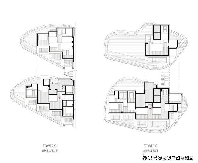 制约条件重重,如何在异形轮廓中创造出符合规范、经典舒适、景观最大化的户型平面,是设计师需要考虑的另一难点。同时,层层退台的形式也为管线机电排布和结构等专业的配合带来更多挑战,设计师除了横向维度的考量,也要纵向组织多样化、跨学科的设计技术问题。