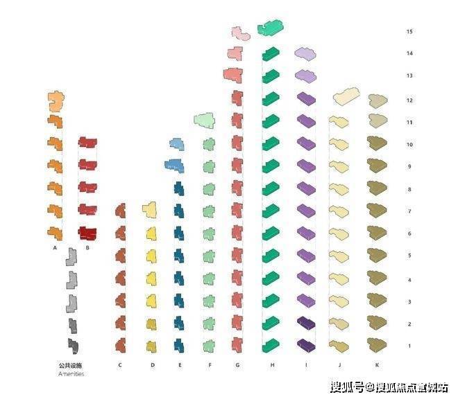 最终,设计确定了单栋“C”形布局的住宅形式,回应基地周边的建筑群落;建筑体量由低到高,以满足新旧混合住宅环绕下基地极为苛刻的日照条件,如梯田和峡谷般层层退台的方式将充足的日光引入每户室内,同时也让建筑唤起都市中人们对中国传统山水自然的回忆。为了适应不同个体差异化的栖居方式,设计师在居住复合体一万余平米的建筑面积中组合了超过30种户型, 同时包含住宅、社区健身设施、社区居委会议室、物业管理等多样化的功能。
