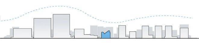 “ 浦东陆家嘴E18新住宅是在既定的场域条件制约中寻找建筑创新的契机, 光线、朝向、视域、退距等都成为建筑赋形的要素, 整栋集合住宅的体量由日光雕凿而成, 形成此时此地的独特城市景象。”