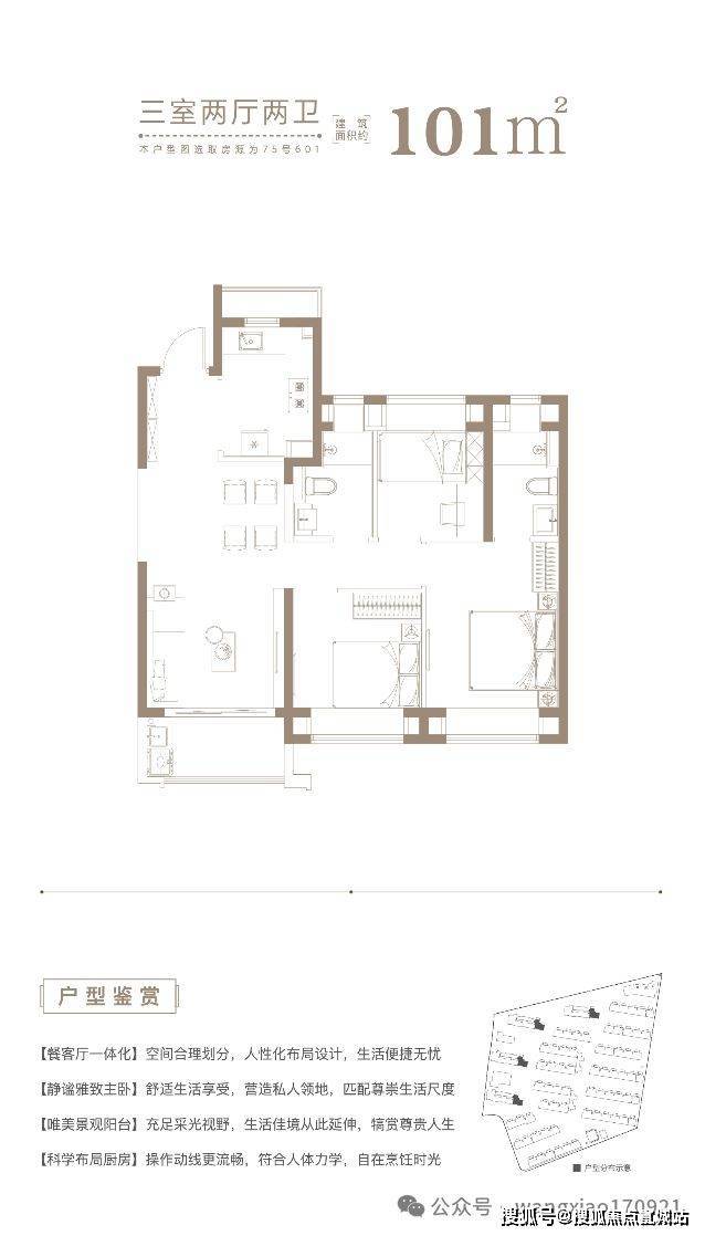 -高层户型:三开间朝南,采光充沛;主卧套房设计,私密奢阔;全卧室配备飘窗,拓展生活视野;厨房预留大尺寸冰箱位,动线合理;双卫布局,避免“早高峰”困扰,动静分区科学,契合精英家庭生活需求。