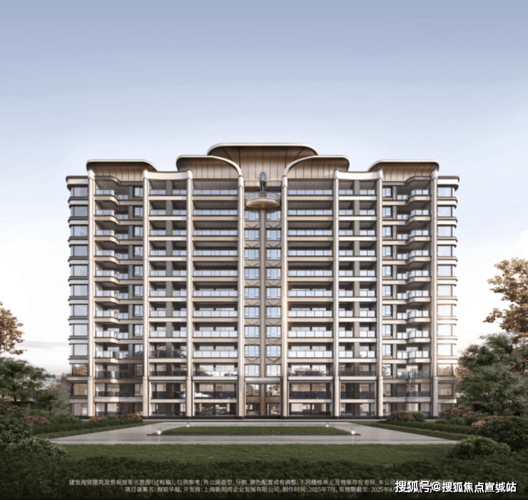 当视线从大门延展至建筑本体,海宸的立面,再次延续了那份“中魂西骨”的精神。