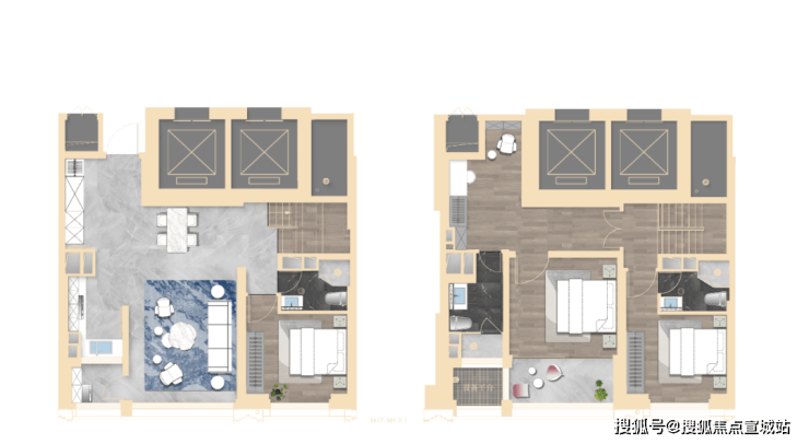 其中3#为超高层,北向可观小区绿化和苏河景观,高区可瞰三件套盛景。