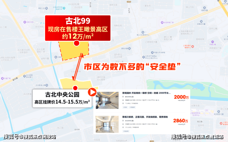 安全垫⑤:一街之隔古北中央公园高区挂牌14.5-15.5万/㎡