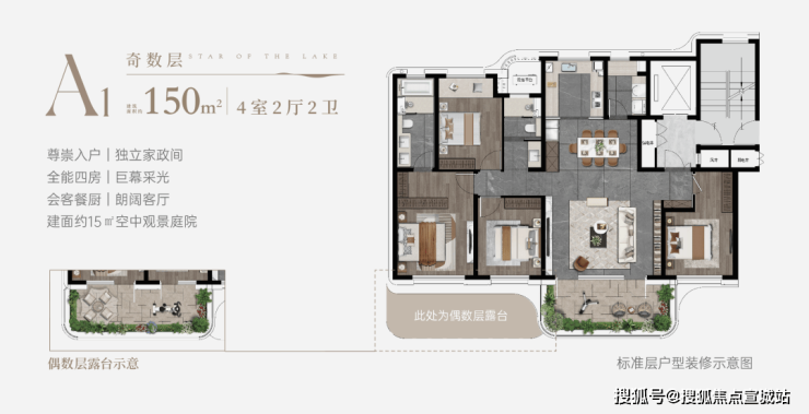 ●稀缺组合:湖居+四代宅的双重稀缺组合,规划建面约150㎡-240㎡低密奢阔大平层,是板块内首个湖居四代宅产品,实际使用得房率约100%。