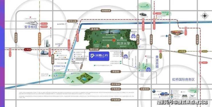 交通配套:距地铁 11 号线昌吉东路站约 1.1 公里,规划中的 14 号线西延伸线同济大学站距项目仅 300 米,预计 2026 年动工。自驾紧邻曹安公路、京沪高速、沈海高速,30 分钟直达虹桥枢纽。
