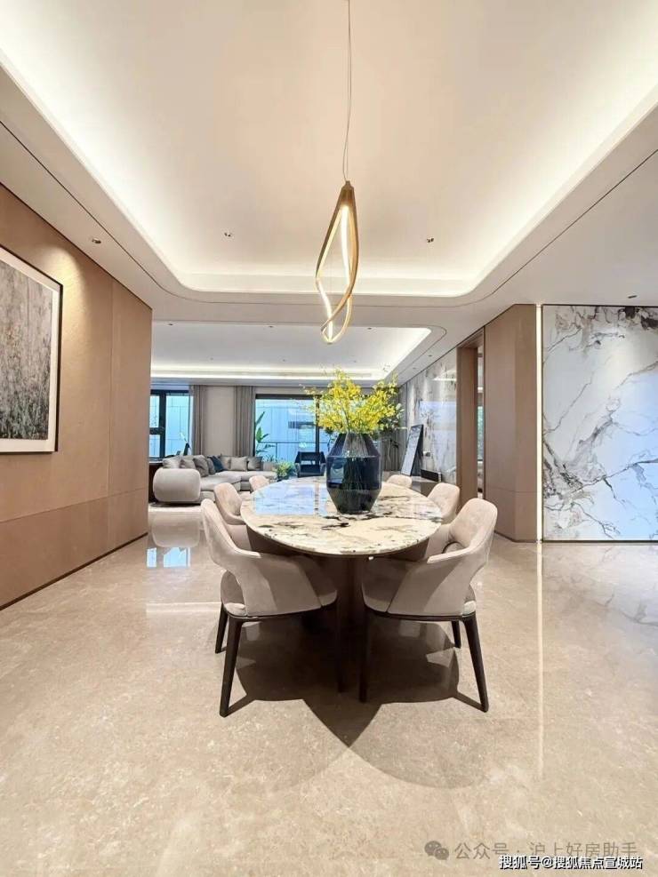 室内设计,秉承摩登东方的理念,设计以人、生活为中心,从空间本体和情感层面都回归生活,270度环幕采光,开放式会客厅设计,兼具尺度感与功能性。