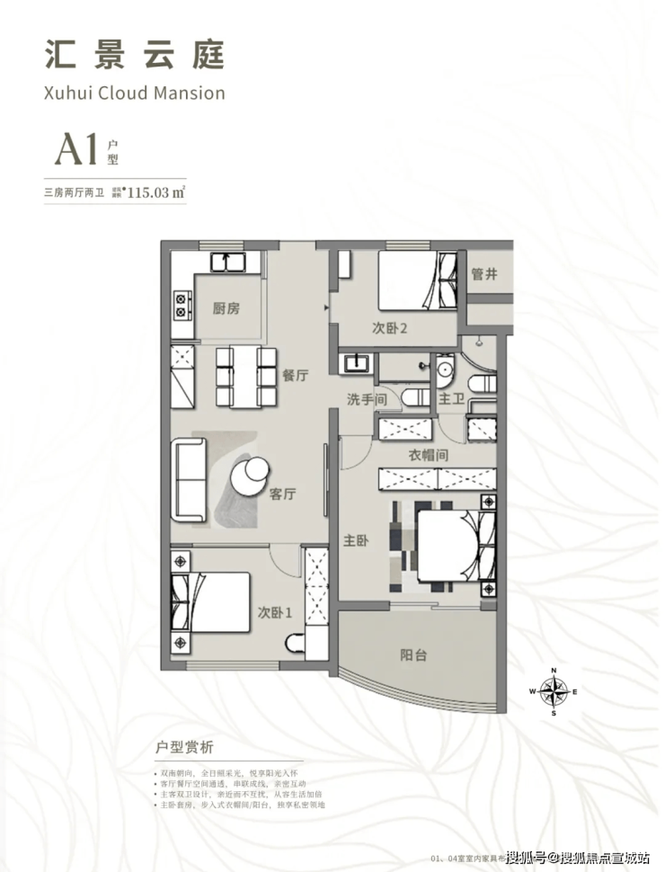 汇景云庭是衡复风貌区甚至整个上海少有的现房项目,前在售少量建面111-115㎡3房2厅2卫。无需等待、入住即享,让购房者买得放心,买得安心!户型图如下: