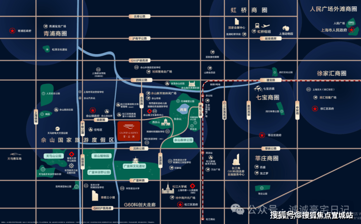 佘山森林公园、辰山植物园、月湖雕塑公园、广富林文化遗址、广富林郊野公园、天马山公园、欢乐谷、世茂精灵之城主题乐园;